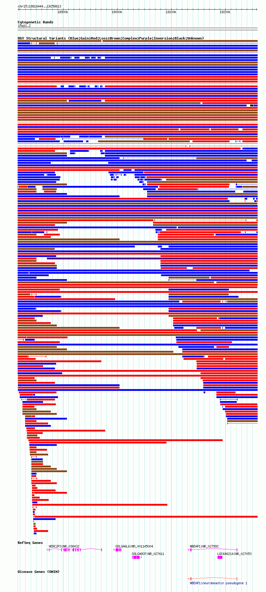 Variant DetailsVariant: nsv1042949| Internal ID | 19132168 | | Landmark | | | Location Information | | | Cytoband | 15q11.1 | | Allele length | | Assembly | Allele length | | hg38 | 442058 | | hg19 | 442134 | | hg18 | 442170 |