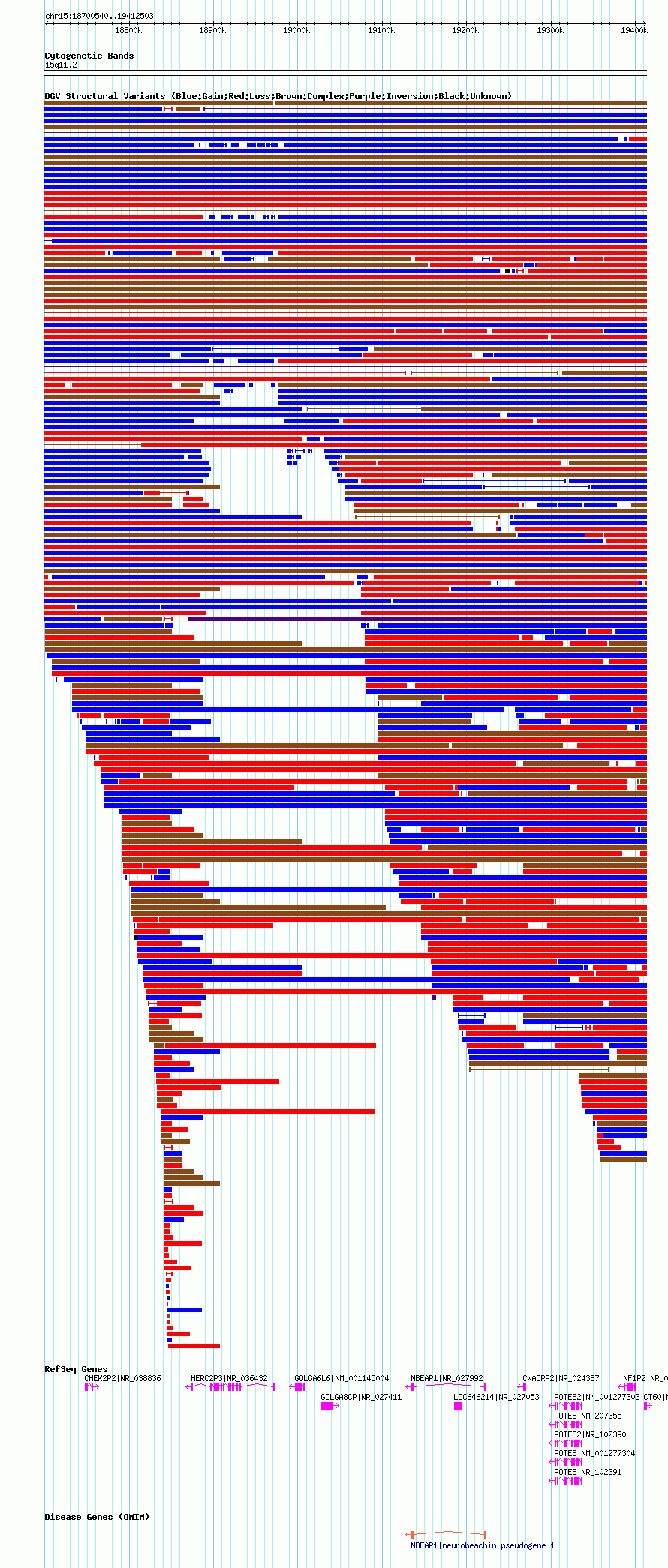 Variant DetailsVariant: nsv1043094| Internal ID | 19132313 | | Landmark | | | Location Information | | | Cytoband | 15q11.1 | | Allele length | | Assembly | Allele length | | hg38 | 707243 | | hg19 | 707319 | | hg18 | 711964 |