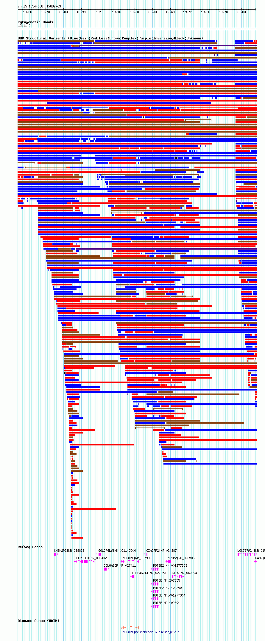 Variant DetailsVariant: nsv1043099| Internal ID | 19132318 | | Landmark | | | Location Information | | | Cytoband | 15q11.1 | | Allele length | | Assembly | Allele length | | hg38 | 2014648 | | hg19 | 2097346 | | hg18 | 1338696 |