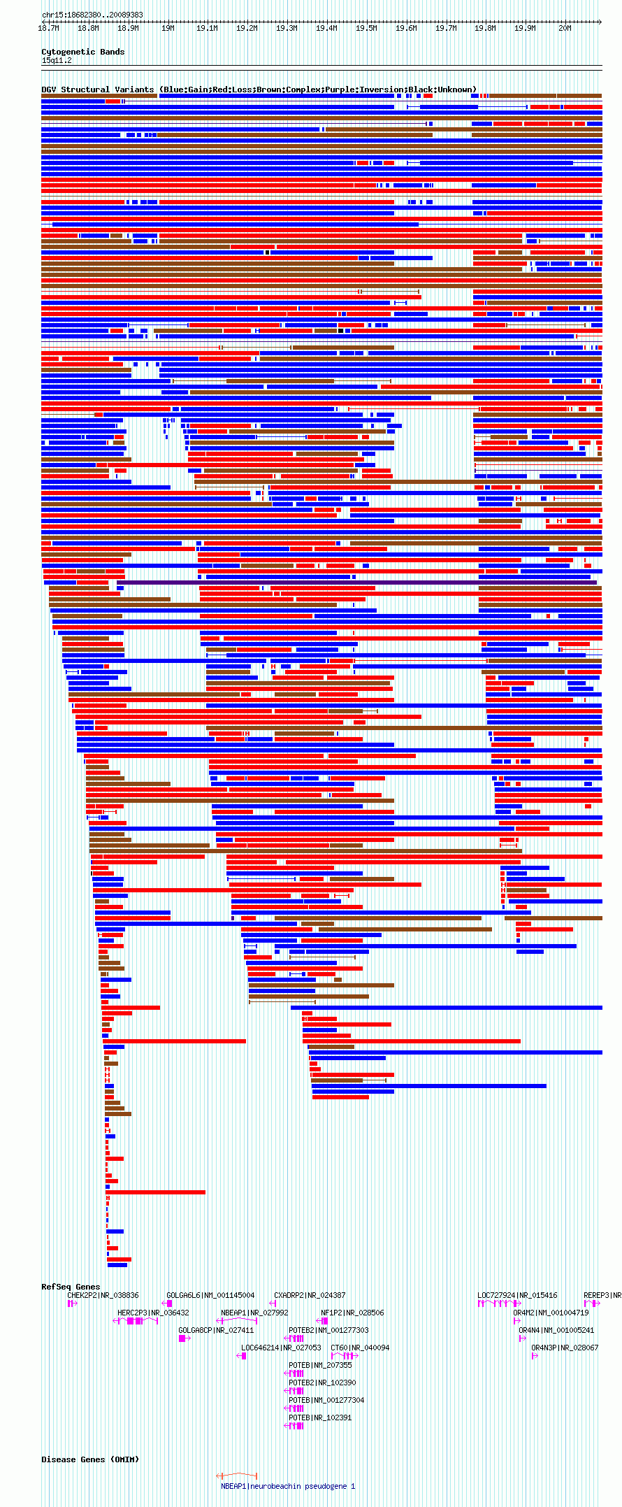 Variant DetailsVariant: nsv1043100| Internal ID | 19132319 | | Landmark | | | Location Information | | | Cytoband | 15q11.1 | | Allele length | | Assembly | Allele length | | hg38 | 2082956 | | hg19 | 2165654 | | hg18 | 1407004 |