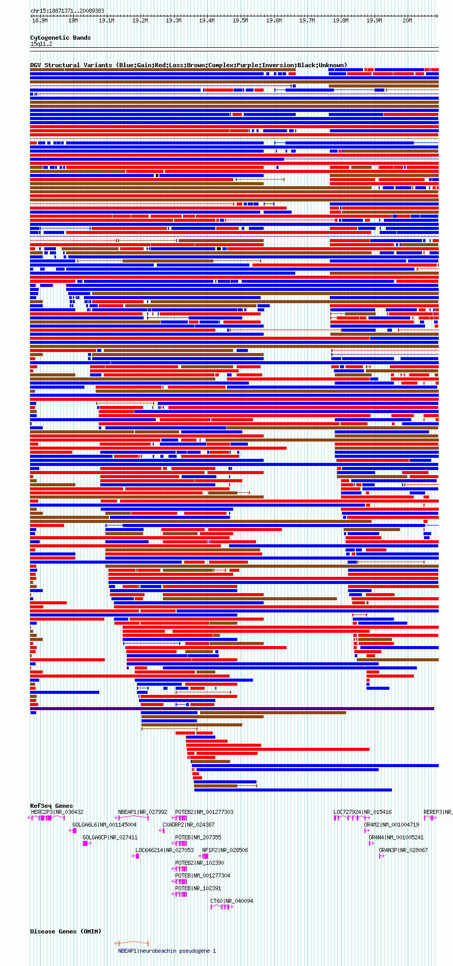 Variant DetailsVariant: nsv1043351| Internal ID | 19132570 | | Landmark | | | Location Information | | | Cytoband | 15q11.1 | | Allele length | | Assembly | Allele length | | hg38 | 1893965 | | hg19 | 1976663 | | hg18 | 1218013 |