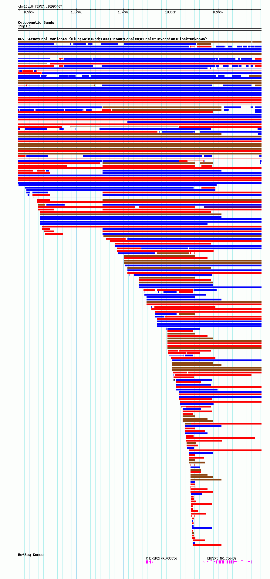 Variant DetailsVariant: nsv1043418| Internal ID | 19132637 | | Landmark | | | Location Information | | | Cytoband | 15q11.1 | | Allele length | | Assembly | Allele length | | hg38 | 513525 | | hg19 | 513511 | | hg18 | 513511 |