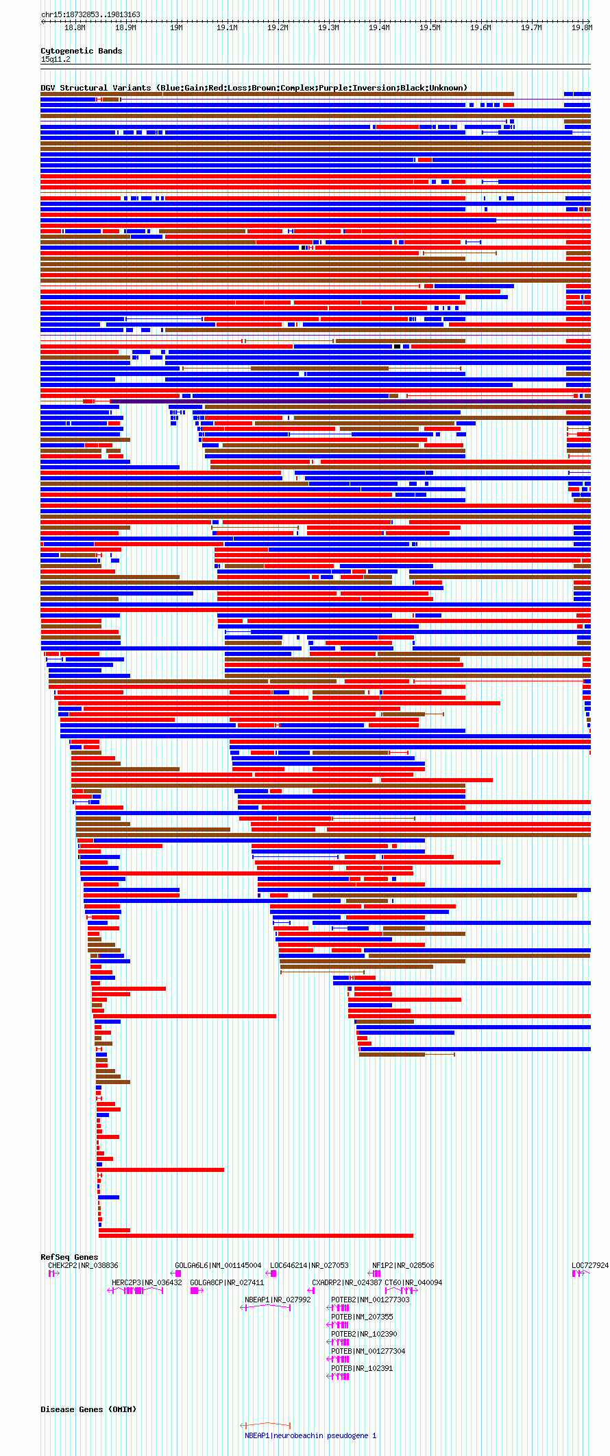 Variant DetailsVariant: nsv1043520| Internal ID | 19132739 | | Landmark | | | Location Information | | | Cytoband | 15q11.1 | | Allele length | | Assembly | Allele length | | hg38 | 1756263 | | hg19 | 1838961 | | hg18 | 1080311 |