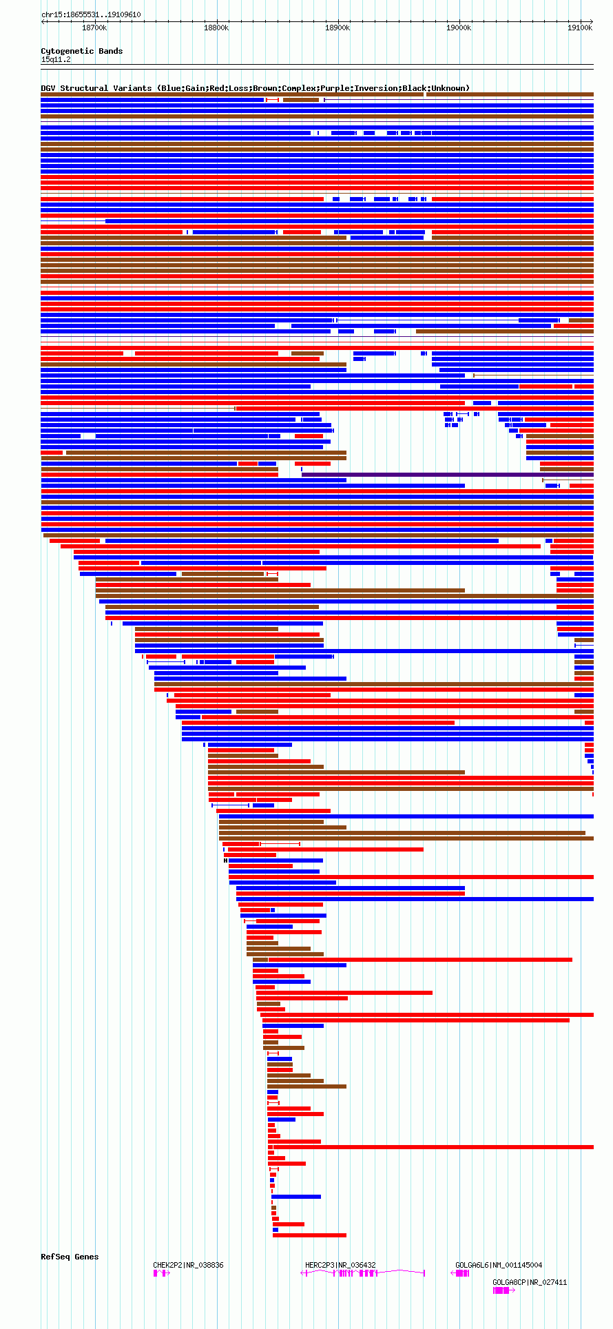 Variant DetailsVariant: nsv1043750| Internal ID | 19132969 | | Landmark | | | Location Information | | | Cytoband | 15q11.1 | | Allele length | | Assembly | Allele length | | hg38 | 454031 | | hg19 | 454080 | | hg18 | 454080 |