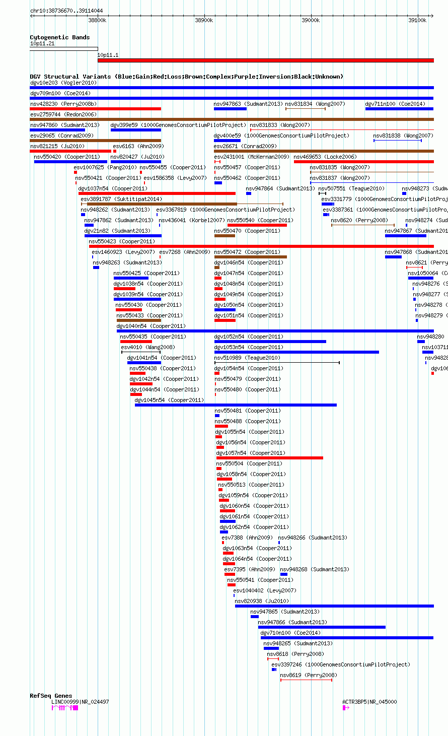 Variant DetailsVariant: nsv1043781| Internal ID | 19133000 | | Landmark | | | Location Information | | | Cytoband | 10p11.1 | | Allele length | | Assembly | Allele length | | hg38 | 373172 | | hg19 | 377375 | | hg18 | 377375 |