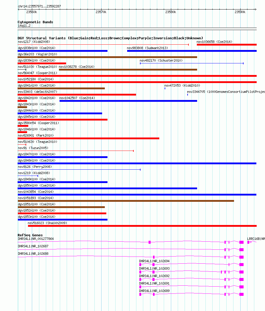 Variant DetailsVariant: nsv1043854| Internal ID | 19133073 | | Landmark | | | Location Information | | | Cytoband | 14q11.2 | | Allele length | | Assembly | Allele length | | hg38 | 34317 | | hg19 | 34317 | | hg18 | 34317 |