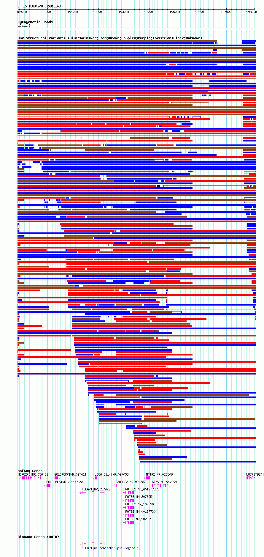 Variant DetailsVariant: nsv1043858| Internal ID | 19133077 | | Landmark | | | Location Information | | | Cytoband | 15q11.1 | | Allele length | | Assembly | Allele length | | hg38 | 1604908 | | hg19 | 1687606 | | hg18 | 928956 |