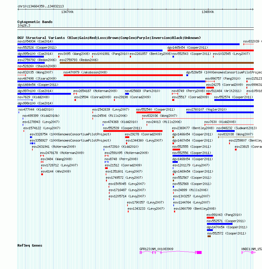 | | Variant Type | CNV gain | | Copy Number | | | Allele State | | | Allele Origin | | | Probe Count | | | Validation Flag | | | Merged Status | M | | Merged Variants | dgv998n100 | | Supporting Variants | nssv3507493 | | Samples | | | Known Genes | GPR123, KNDC1 | | Method | SNP array | | Analysis | Affymetrix SNP array copy number analysis | | Platform | Affymetrix SNP Array 6.0 | | Comments | | | Reference | Coe_et_al_2014 | | Pubmed ID | 25217958 | | Accession Number(s) | nsv1043942