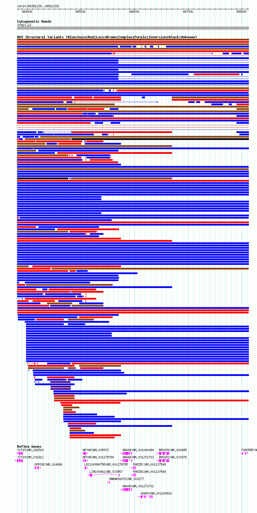 Variant DetailsVariant: nsv1043950| Internal ID | 19133169 | | Landmark | | | Location Information | | | Cytoband | 10q11.22 | | Allele length | | Assembly | Allele length | | hg19 | 431088 | | hg18 | 431088 |
