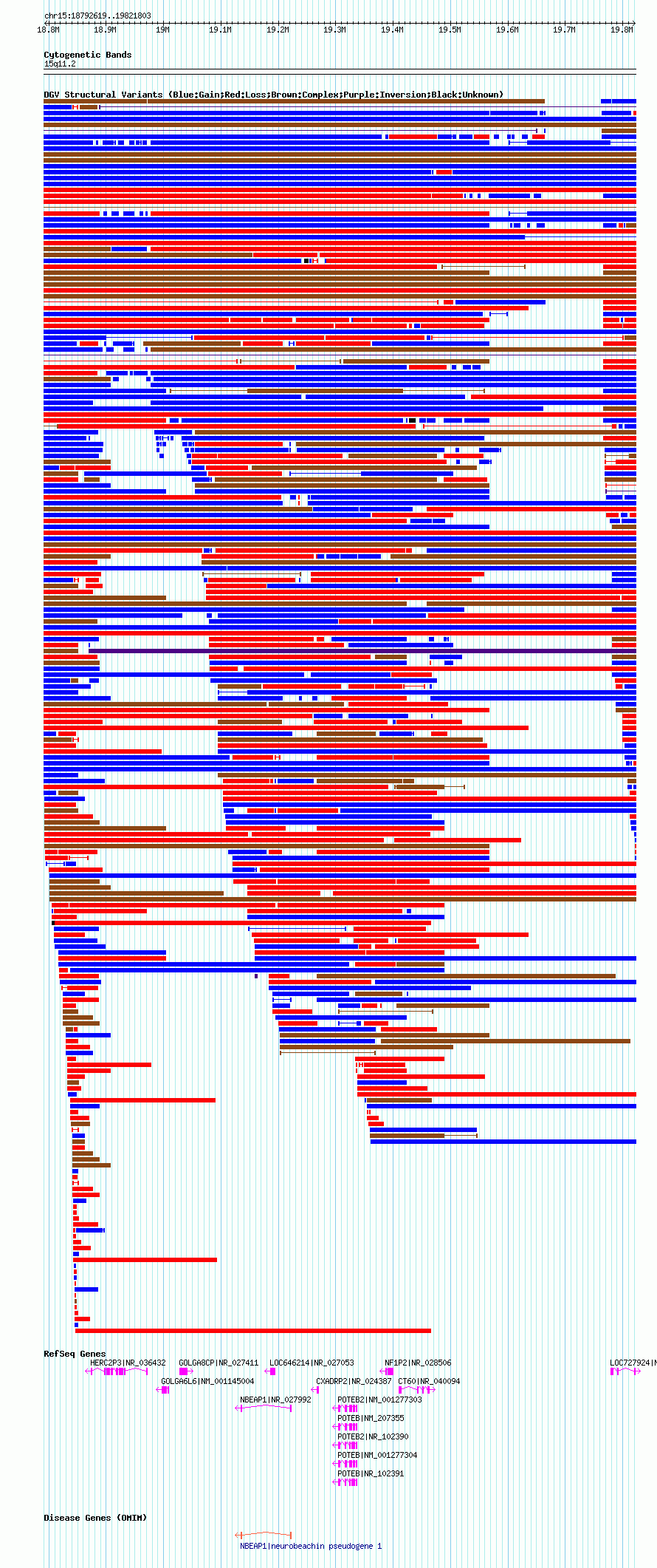 Variant DetailsVariant: nsv1044164| Internal ID | 19133383 | | Landmark | | | Location Information | | | Cytoband | 15q11.1 | | Allele length | | Assembly | Allele length | | hg38 | 1705137 | | hg19 | 1787835 | | hg18 | 1029185 |