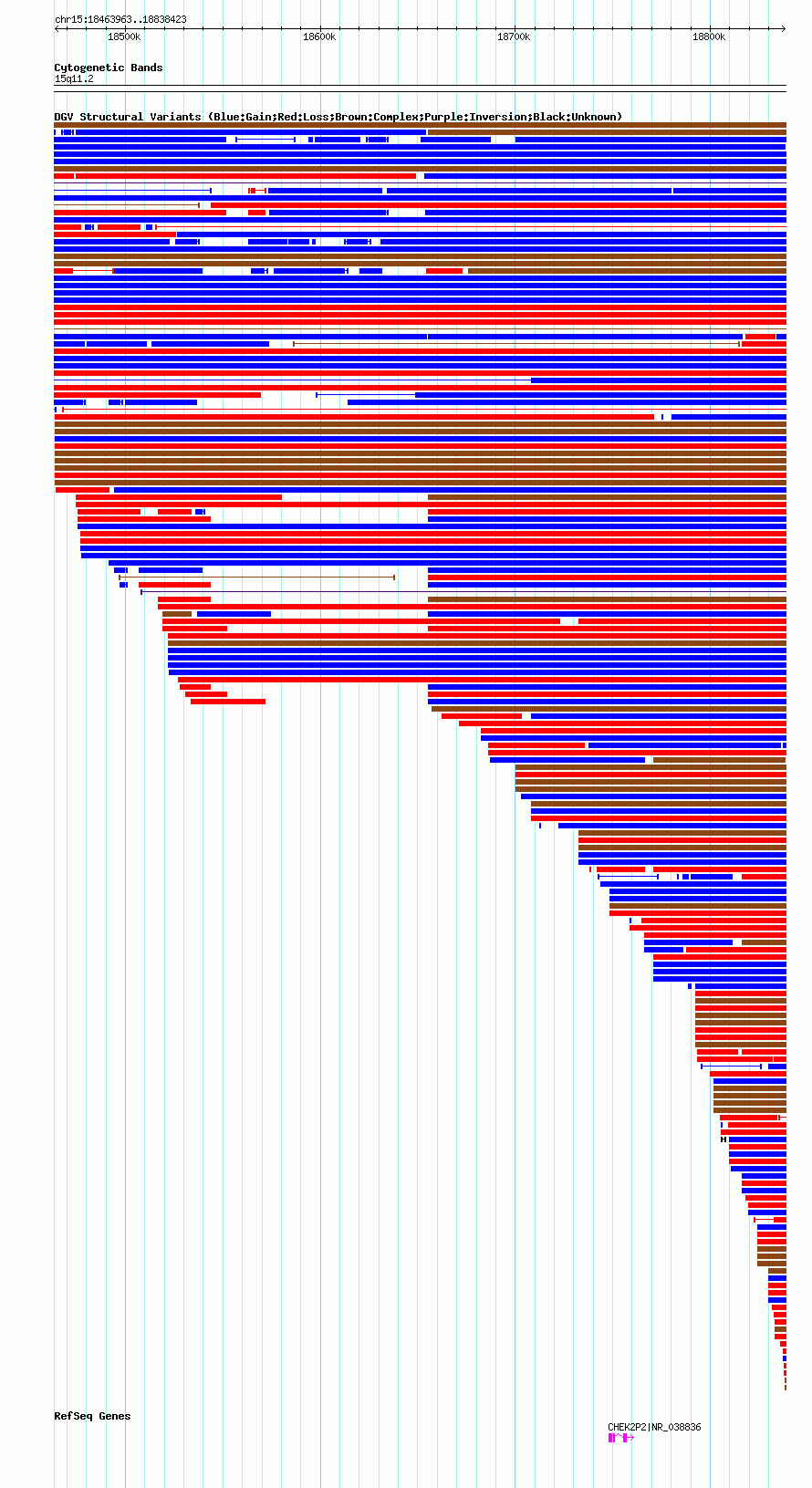 | | Variant Type | CNV gain+loss | | Copy Number | | | Allele State | | | Allele Origin | | | Probe Count | | | Validation Flag | | | Merged Status | M | | Merged Variants | dgv2185n100 | | Supporting Variants | nssv3534490, nssv3534486, nssv3534477, nssv3534481, nssv3534493, nssv3534482, nssv3534491, nssv3534492, nssv3534488, nssv3534480, nssv3715706, nssv3534473, nssv3534489, nssv3534476, nssv3534485, nssv3534474, nssv3534475, nssv3534484, nssv3715703, nssv3715705, nssv3715704, nssv3534478, nssv3534487, nssv3534483, nssv3534479 | | Samples | | | Known Genes | CHEK2P2 | | Method | SNP array | | Analysis | Affymetrix SNP array copy number analysis | | Platform | Affymetrix SNP Array 6.0 | | Comments | | | Reference | Coe_et_al_2014 | | Pubmed ID | 25217958 | | Accession Number(s) | nsv1044359