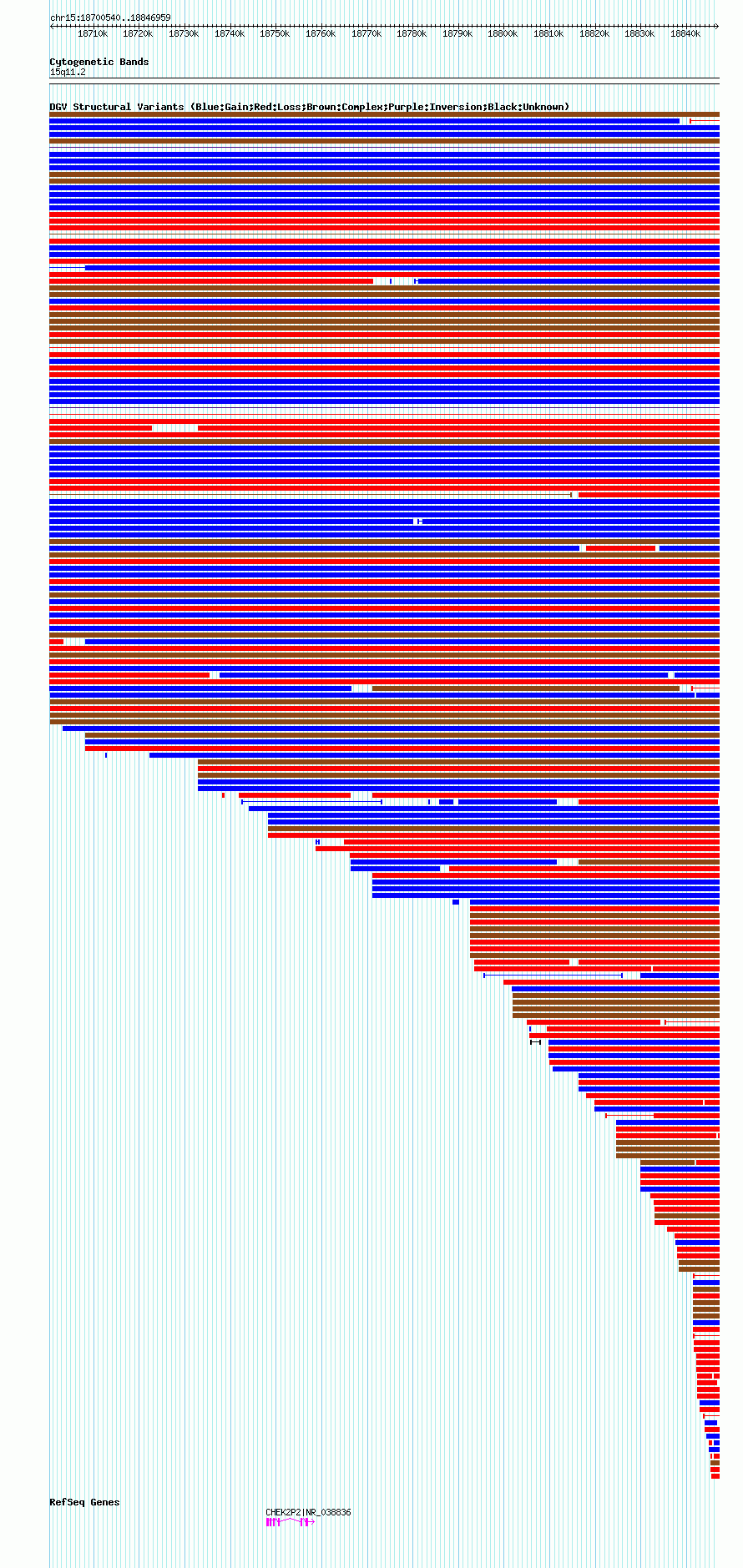 Variant DetailsVariant: nsv1044447| Internal ID | 19133666 | | Landmark | | | Location Information | | | Cytoband | 15q11.1 | | Allele length | | Assembly | Allele length | | hg38 | 146420 | | hg19 | 146420 | | hg18 | 146420 |