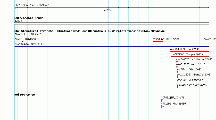 Variant DetailsVariant: nsv1044757| Internal ID | 19133976 | | Landmark | | | Location Information | | | Cytoband | 12q22 | | Allele length | | Assembly | Allele length | | hg38 | 192247 | | hg19 | 192247 | | hg18 | 192247 |