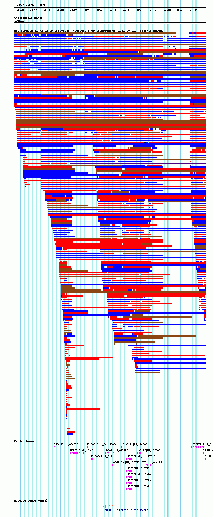 Variant DetailsVariant: nsv1044776| Internal ID | 19133995 | | Landmark | | | Location Information | | | Cytoband | 15q11.1 | | Allele length | | Assembly | Allele length | | hg38 | 2110801 | | hg19 | 2193499 | | hg18 | 1434849 |