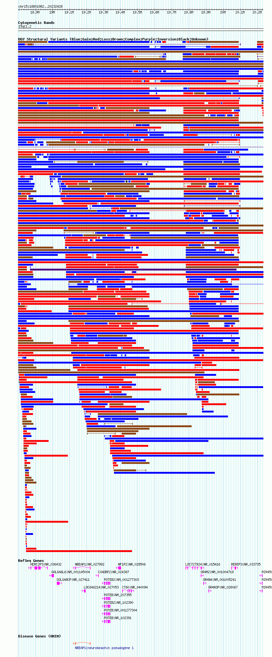 Variant DetailsVariant: nsv1044865| Internal ID | 19134084 | | Landmark | | | Location Information | | | Cytoband | 15q11.1 | | Allele length | | Assembly | Allele length | | hg38 | 1971528 | | hg19 | 2139097 | | hg18 | 1430447 |