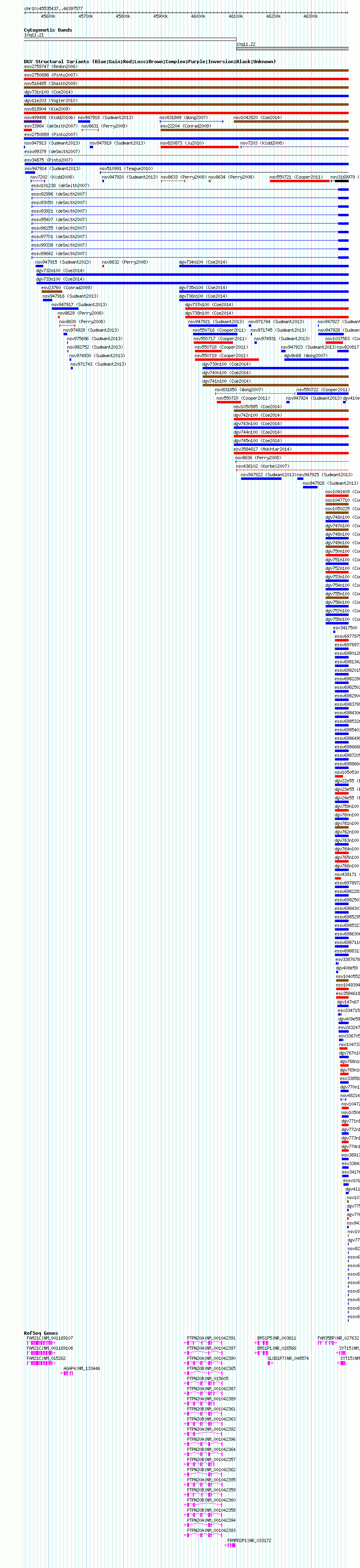 Variant DetailsVariant: nsv1045120| Internal ID | 19134339 | | Landmark | | | Location Information | | | Cytoband | 10q11.21 | | Allele length | | Assembly | Allele length | | hg19 | 762141 | | hg18 | 862141 |