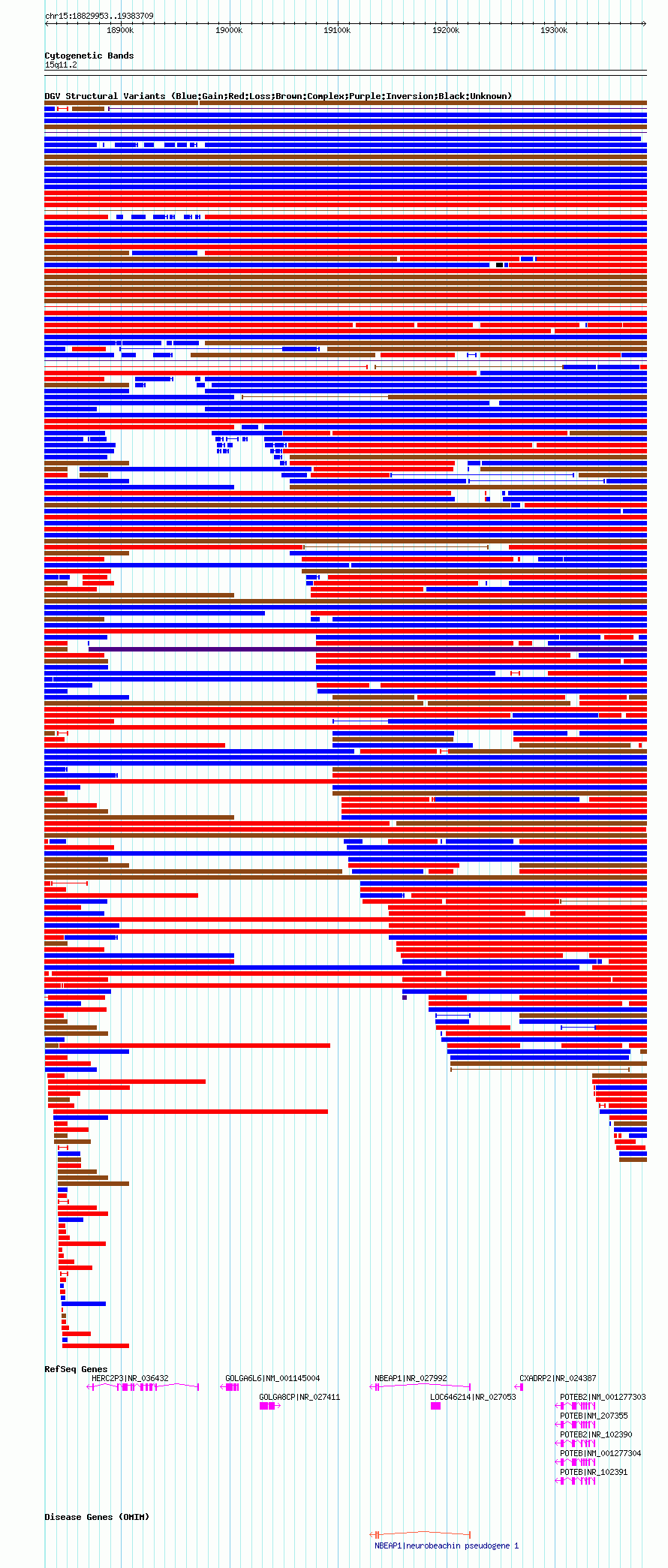 Variant DetailsVariant: nsv1045272| Internal ID | 19134491 | | Landmark | | | Location Information | | | Cytoband | 15q11.1 | | Allele length | | Assembly | Allele length | | hg38 | 549070 | | hg19 | 549146 | | hg18 | 553757 |