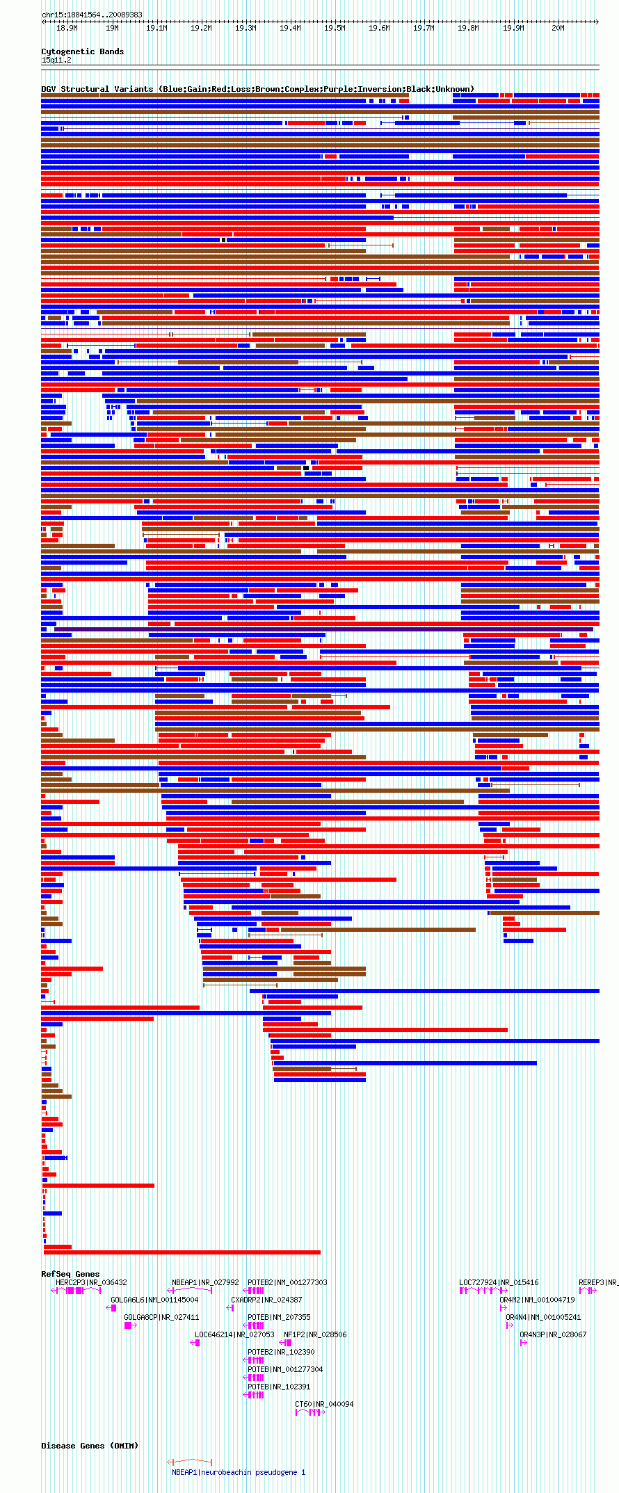 Variant DetailsVariant: nsv1045471| Internal ID | 19134690 | | Landmark | | | Location Information | | | Cytoband | 15q11.1 | | Allele length | | Assembly | Allele length | | hg38 | 1923772 | | hg19 | 2006470 | | hg18 | 1247820 |