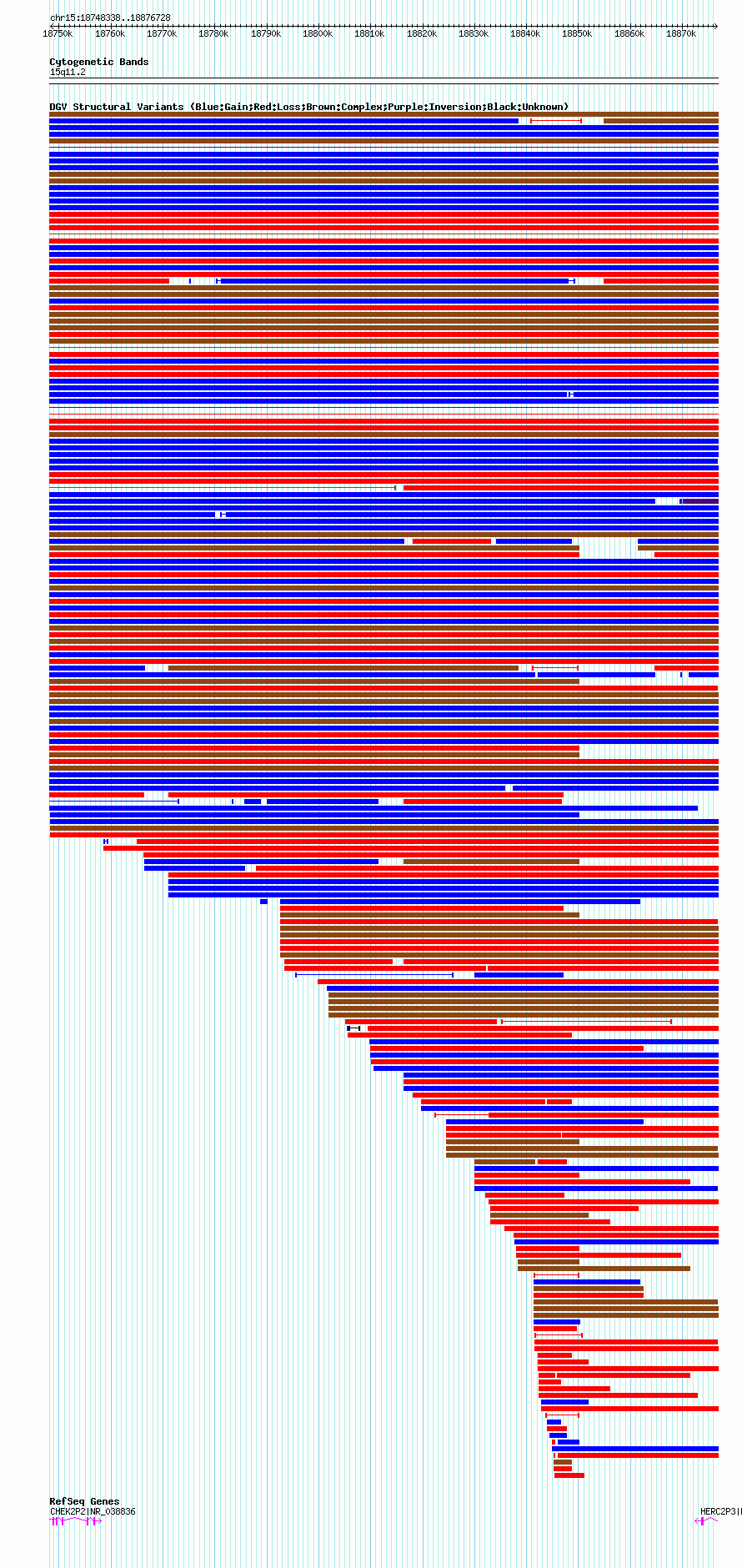 Variant DetailsVariant: nsv1045480| Internal ID | 19134699 | | Landmark | | | Location Information | | | Cytoband | 15q11.1 | | Allele length | | Assembly | Allele length | | hg38 | 128391 | | hg19 | 128391 | | hg18 | 128391 |
