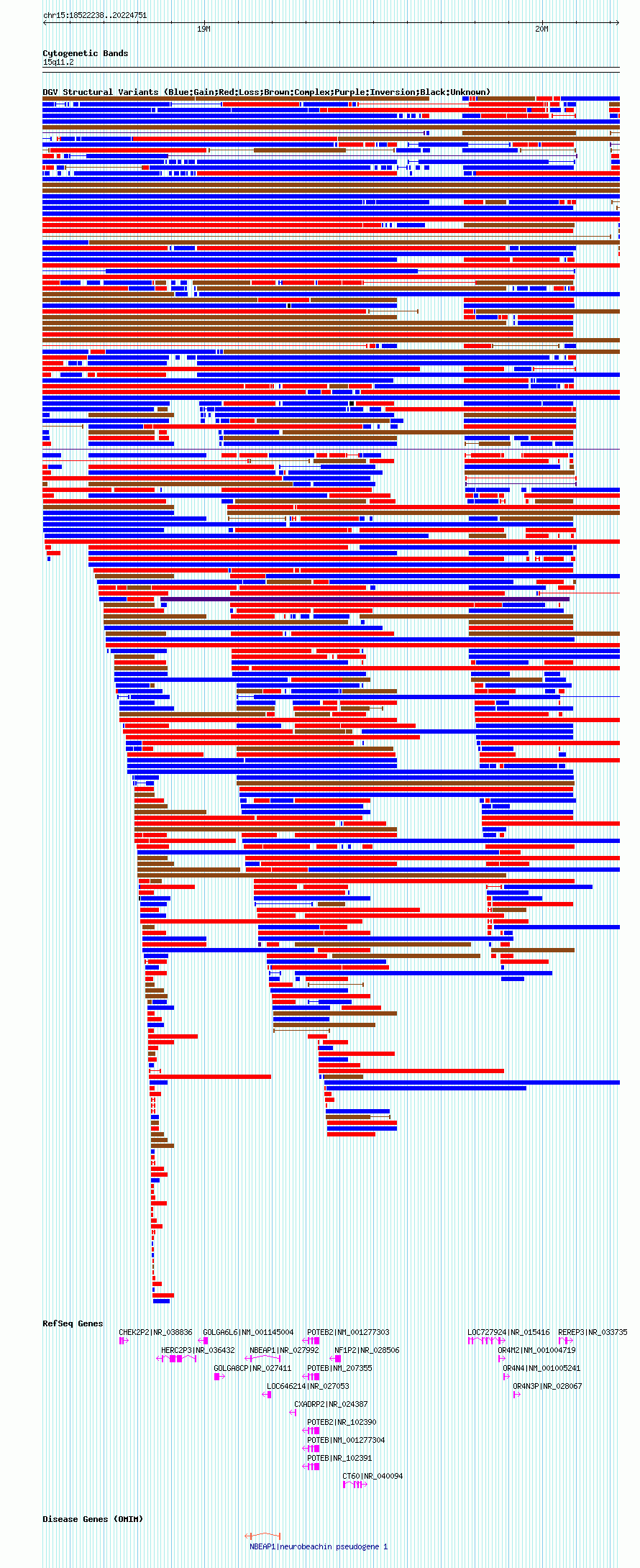 Variant DetailsVariant: nsv1045859| Internal ID | 19135078 | | Landmark | | | Location Information | | | Cytoband | 15q11.1 | | Allele length | | Assembly | Allele length | | hg38 | 2251272 | | hg19 | 2411164 | | hg18 | 1702514 |