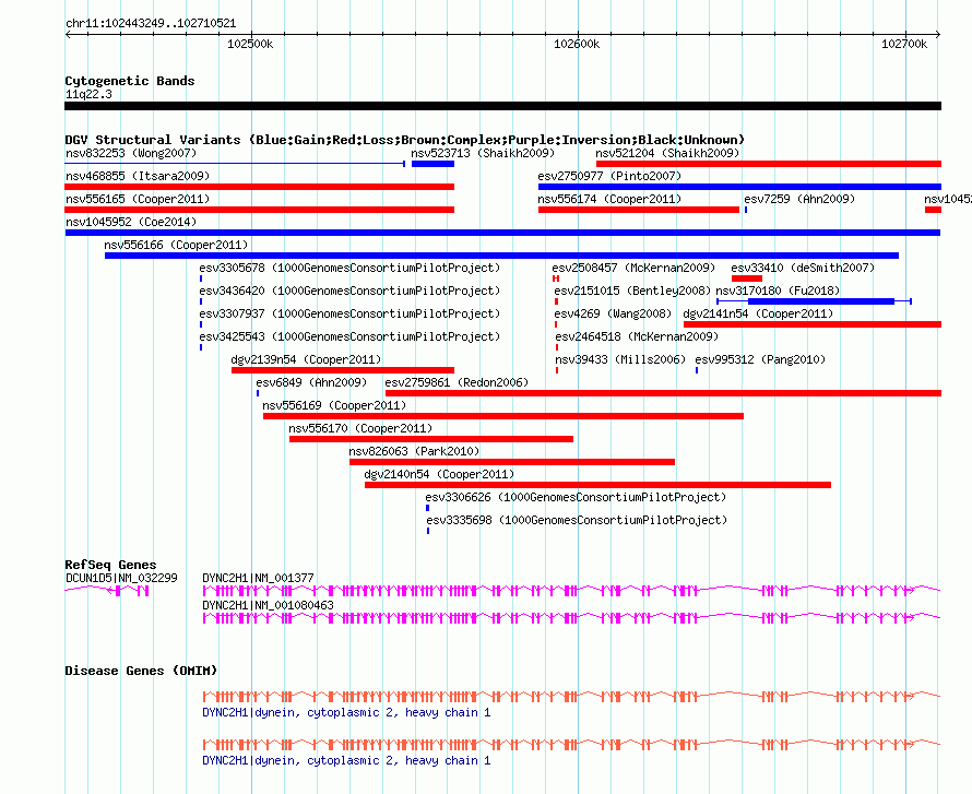 Variant DetailsVariant: nsv1045952| Internal ID | 19135171 | | Landmark | | | Location Information | | | Cytoband | 11q22.3 | | Allele length | | Assembly | Allele length | | hg38 | 267274 | | hg19 | 267273 | | hg18 | 267273 |