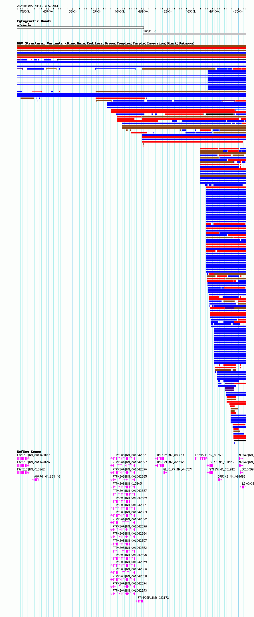 Variant DetailsVariant: nsv1045969| Internal ID | 19135188 | | Landmark | | | Location Information | | | Cytoband | 10q11.21 | | Allele length | | Assembly | Allele length | | hg19 | 862181 | | hg18 | 962181 |