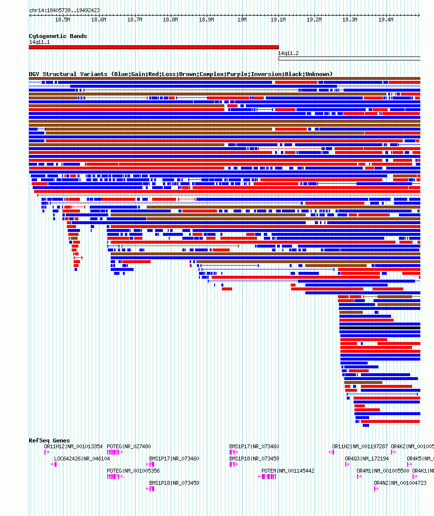 Variant DetailsVariant: nsv1045976| Internal ID | 19135195 | | Landmark | | | Location Information | | | Cytoband | 14q11.1 | | Allele length | | Assembly | Allele length | | hg38 | 1395163 | | hg19 | 1086845 | | hg18 | 1086685 |