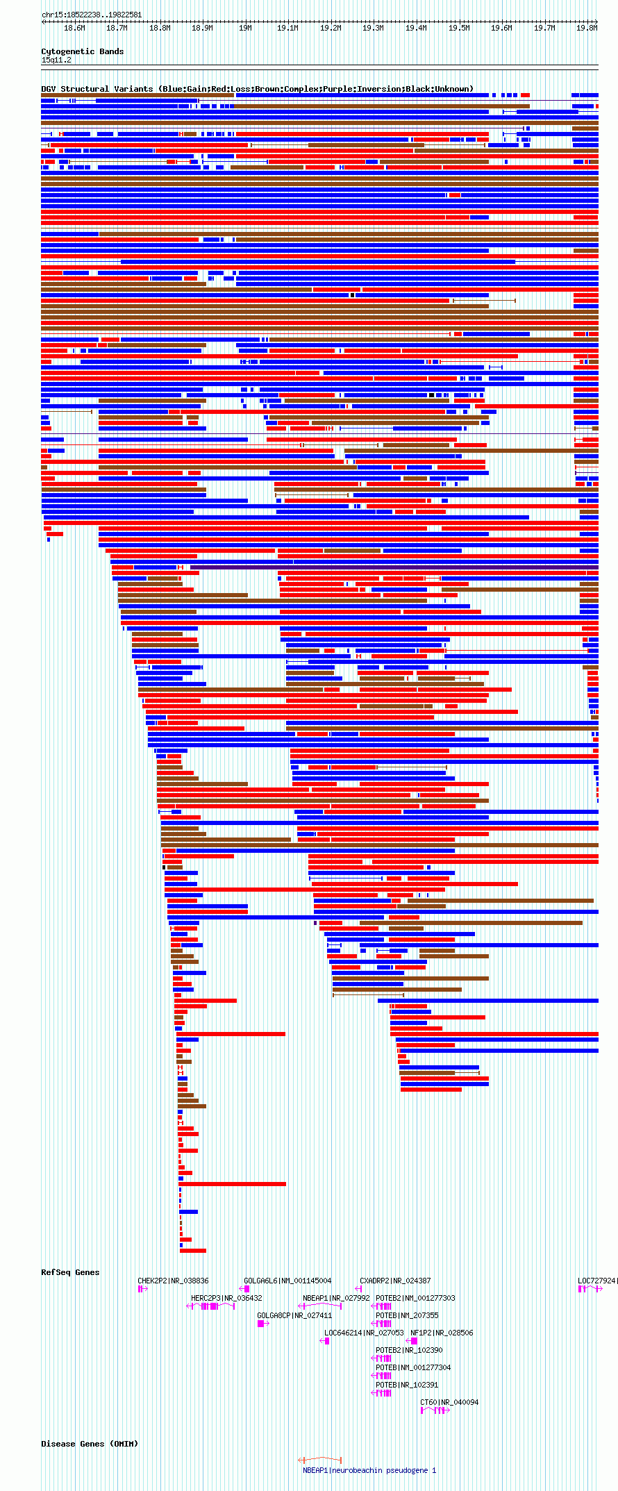Variant DetailsVariant: nsv1045988| Internal ID | 19135207 | | Landmark | | | Location Information | | | Cytoband | 15q11.1 | | Allele length | | Assembly | Allele length | | hg38 | 1976296 | | hg19 | 2058994 | | hg18 | 1300344 |