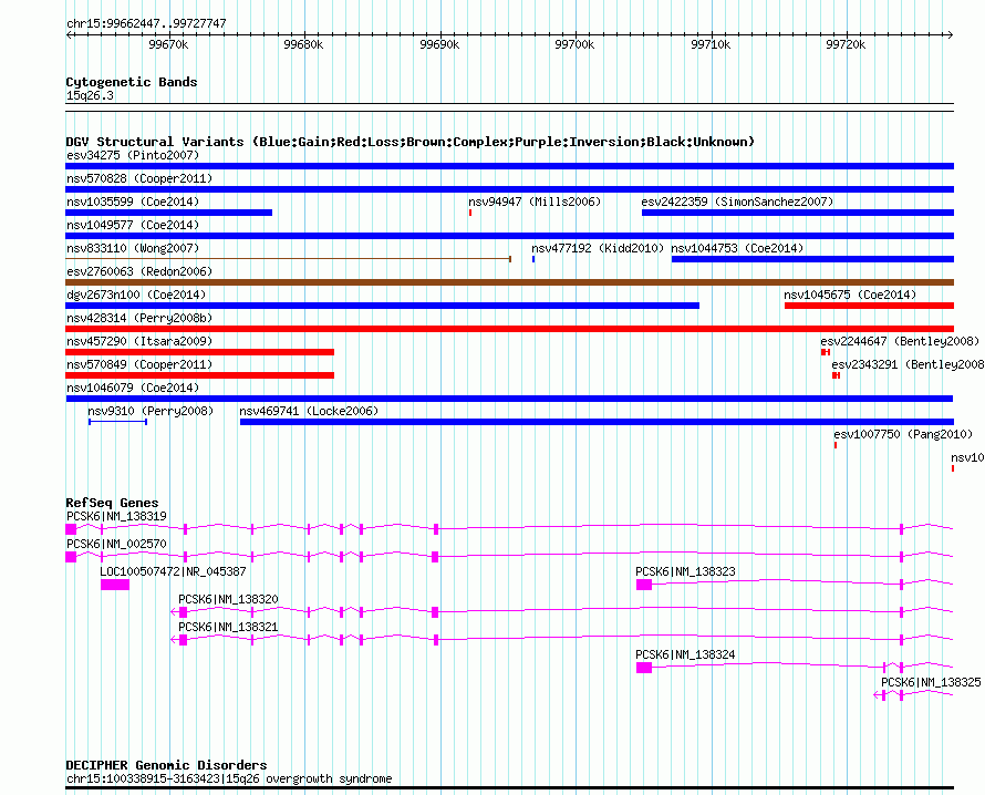 Variant DetailsVariant: nsv1046079| Internal ID | 18788610 | | Landmark | | | Location Information | | | Cytoband | 15q26.3 | | Allele length | | Assembly | Allele length | | hg38 | 65301 | | hg19 | 65301 | | hg18 | 65301 |