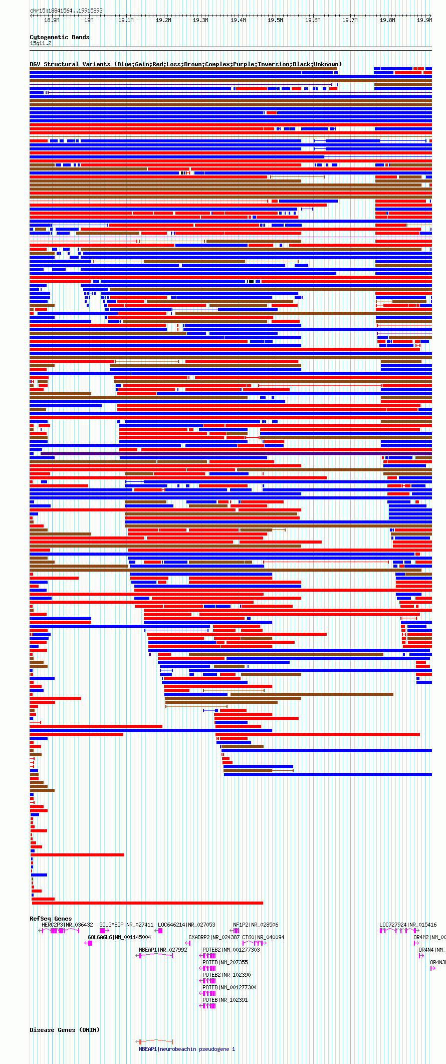 Variant DetailsVariant: nsv1046290| Internal ID | 19135509 | | Landmark | | | Location Information | | | Cytoband | 15q11.1 | | Allele length | | Assembly | Allele length | | hg38 | 1750282 | | hg19 | 1832980 | | hg18 | 1074330 |
