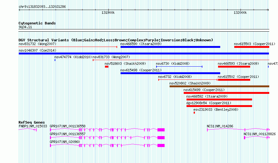 Variant DetailsVariant: nsv1046307| Internal ID | 18788838 | | Landmark | | | Location Information | | | Cytoband | 9q34.11 | | Allele length | | Assembly | Allele length | | hg38 | 189194 | | hg19 | 189194 | | hg18 | 189194 |