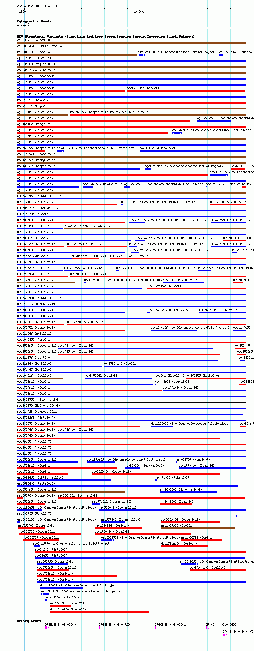 Variant DetailsVariant: nsv1046844| Internal ID | 19136063 | | Landmark | | | Location Information | | | Cytoband | 14q11.2 | | Allele length | | Assembly | Allele length | | hg38 | 199358 | | hg19 | 199358 | | hg18 | 199358 |
