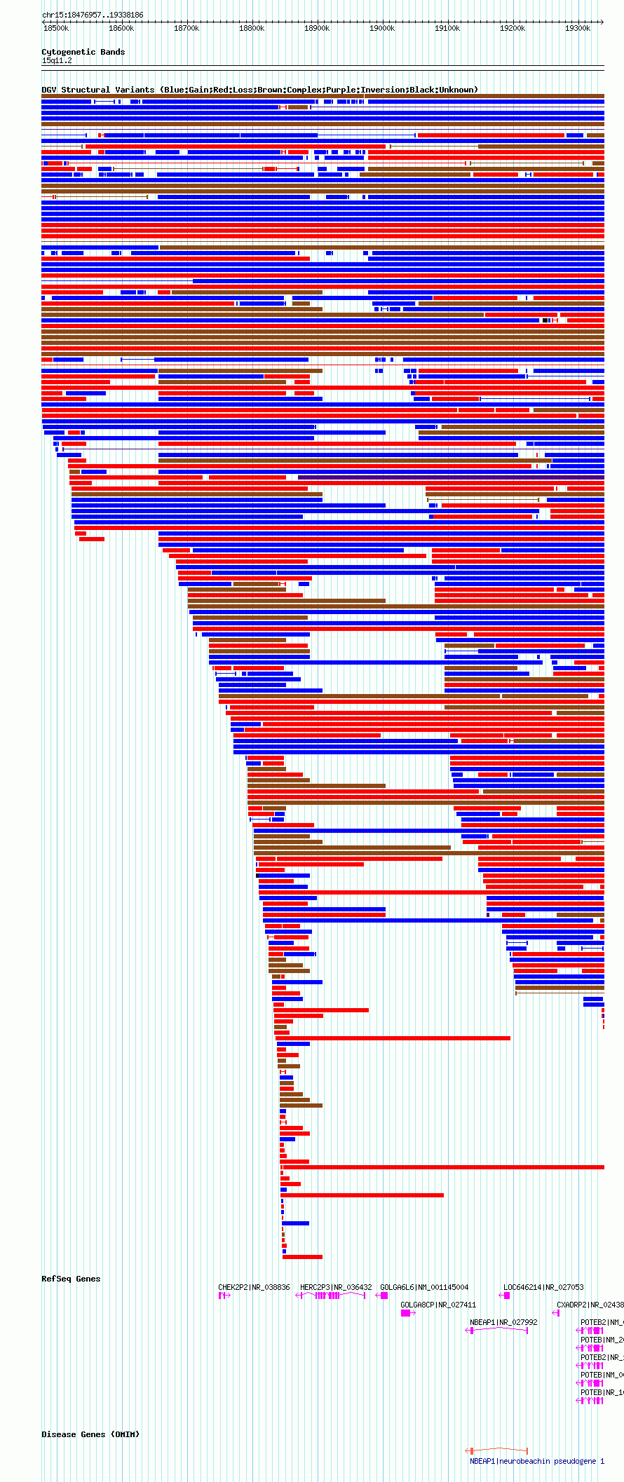 Variant DetailsVariant: nsv1046895| Internal ID | 19136114 | | Landmark | | | Location Information | | | Cytoband | 15q11.1 | | Allele length | | Assembly | Allele length | | hg38 | 856510 | | hg19 | 856586 | | hg18 | 861230 |