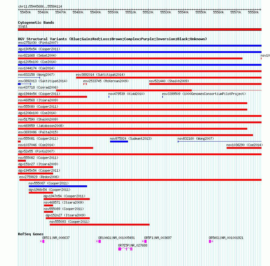 Variant DetailsVariant: nsv1047031| Internal ID | 19136250 | | Landmark | | | Location Information | | | Cytoband | 11q11 | | Allele length | | Assembly | Allele length | | hg38 | 138429 | | hg19 | 138429 | | hg18 | 138429 |