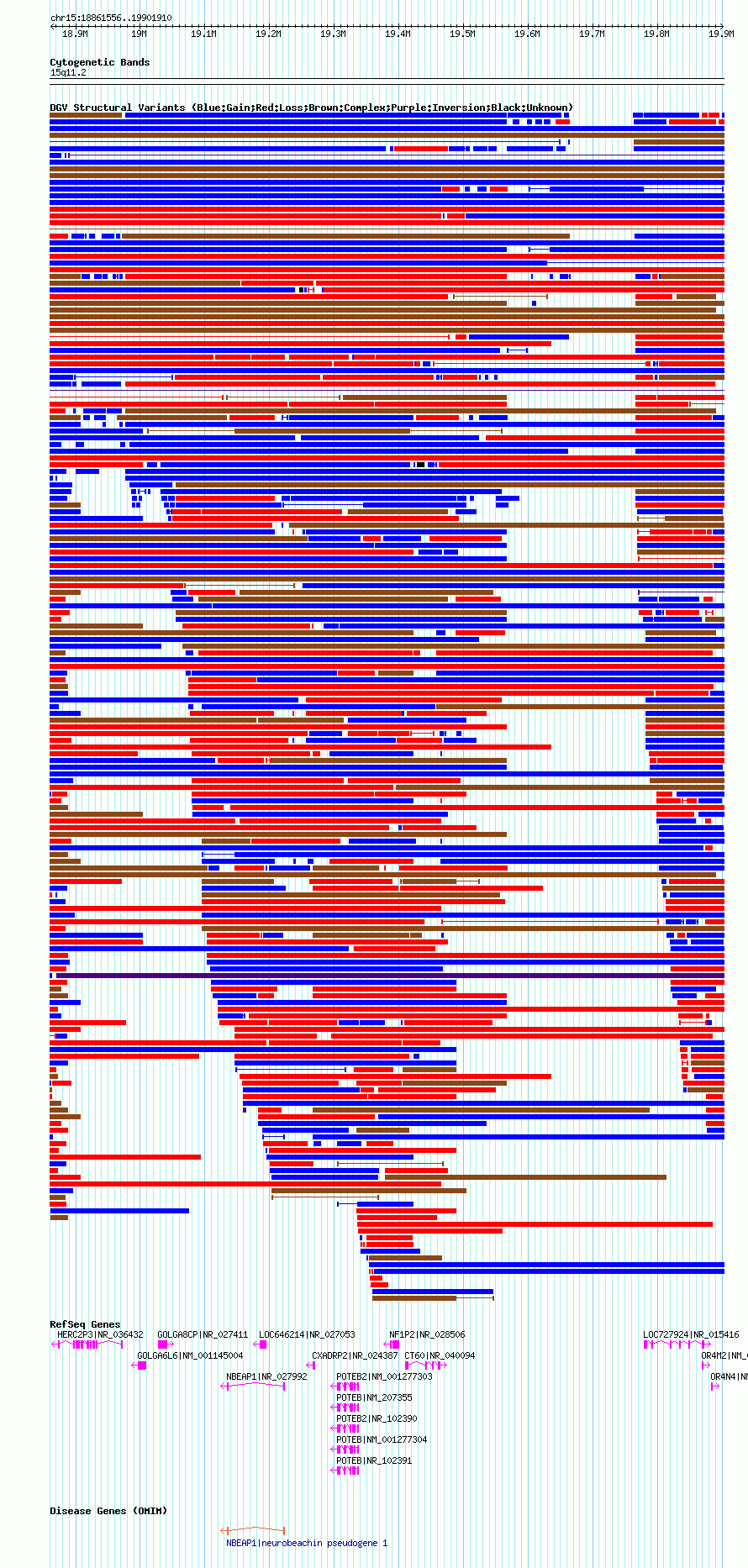 Variant DetailsVariant: nsv1047123| Internal ID | 19136342 | | Landmark | | | Location Information | | | Cytoband | 15q11.1 | | Allele length | | Assembly | Allele length | | hg38 | 1716307 | | hg19 | 1799005 | | hg18 | 1040355 |