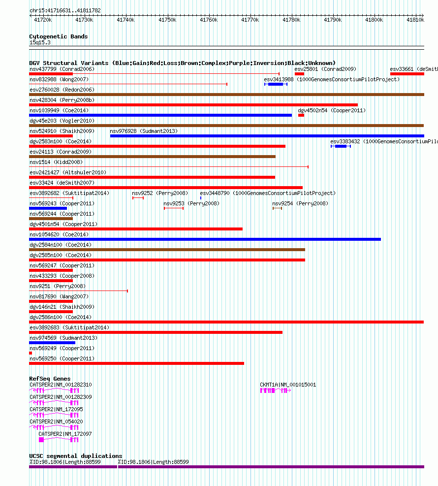 Variant DetailsVariant: nsv1047213| Internal ID | 18789744 | | Landmark | | | Location Information | | | Cytoband | 15q15.3 | | Allele length | | Assembly | Allele length | | hg38 | 95152 | | hg19 | 95152 | | hg18 | 95152 |