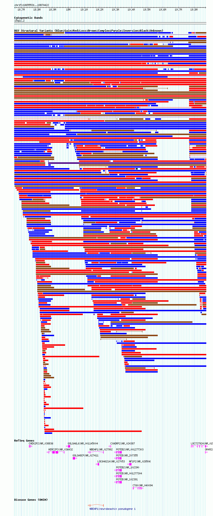 Variant DetailsVariant: nsv1047316| Internal ID | 19136535 | | Landmark | | | Location Information | | | Cytoband | 15q11.1 | | Allele length | | Assembly | Allele length | | hg38 | 1894844 | | hg19 | 1977542 | | hg18 | 1218892 |