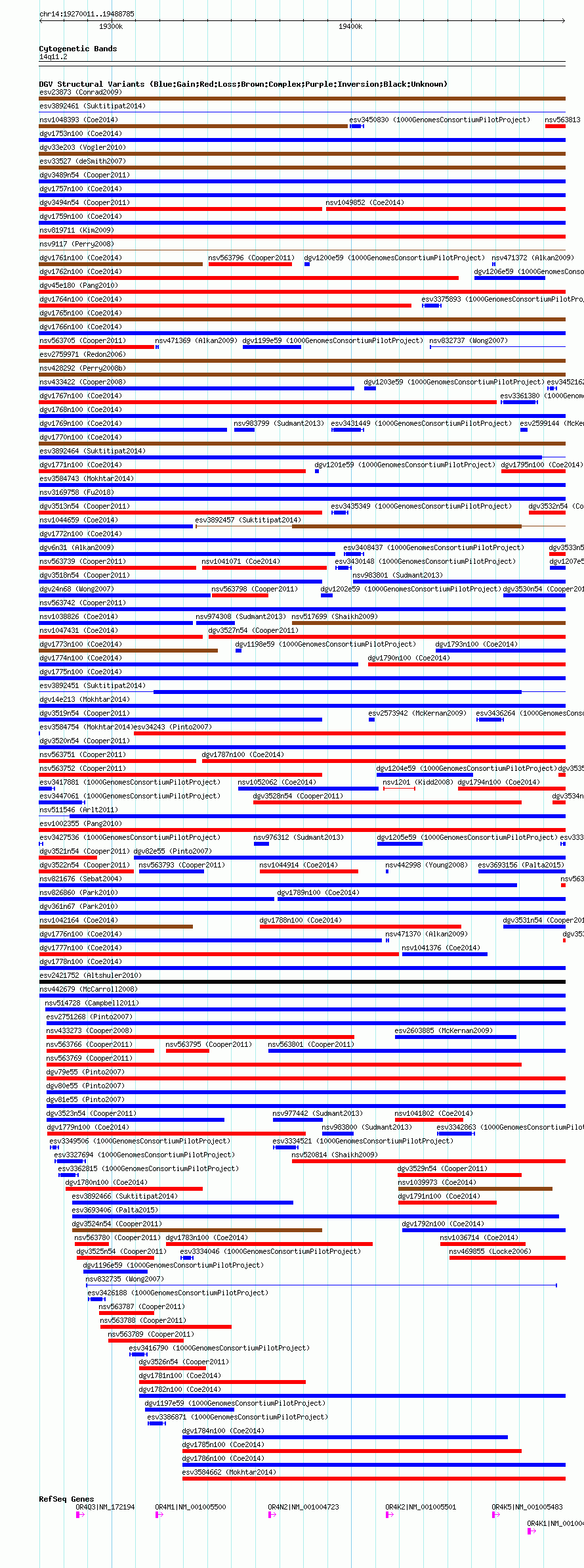 Variant DetailsVariant: nsv1047396| Internal ID | 19136615 | | Landmark | | | Location Information | | | Cytoband | 14q11.2 | | Allele length | | Assembly | Allele length | | hg38 | 218775 | | hg19 | 218775 | | hg18 | 218775 |