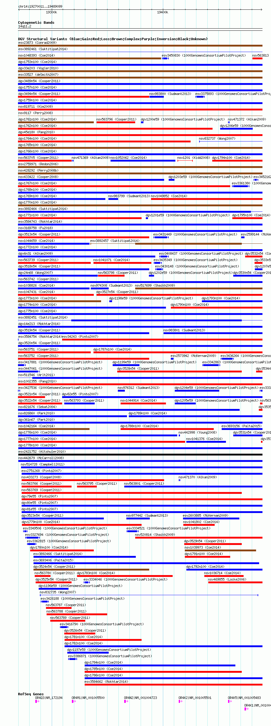 Variant DetailsVariant: nsv1047940| Internal ID | 19137159 | | Landmark | | | Location Information | | | Cytoband | 14q11.2 | | Allele length | | Assembly | Allele length | | hg38 | 219089 | | hg19 | 219089 | | hg18 | 219089 |