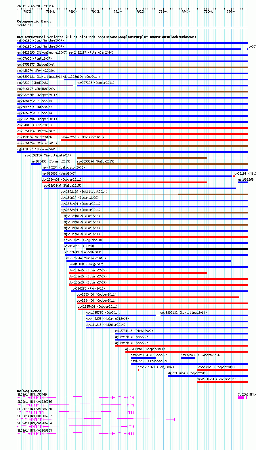 Variant DetailsVariant: nsv1048059| Internal ID | 19137278 | | Landmark | | | Location Information | | | Cytoband | 12p13.31 | | Allele length | | Assembly | Allele length | | hg38 | 101892 | | hg19 | 101892 | | hg18 | 101892 |