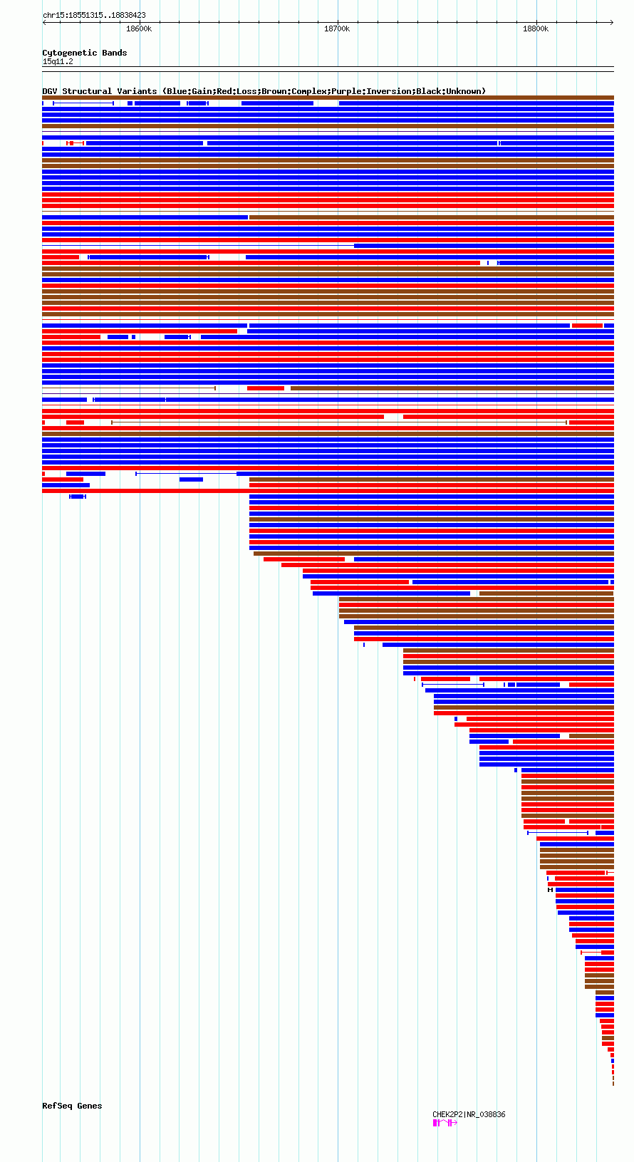 Variant DetailsVariant: nsv1048110| Internal ID | 19137329 | | Landmark | | | Location Information | | | Cytoband | 15q11.1 | | Allele length | | Assembly | Allele length | | hg38 | 287109 | | hg19 | 287109 | | hg18 | 287109 |