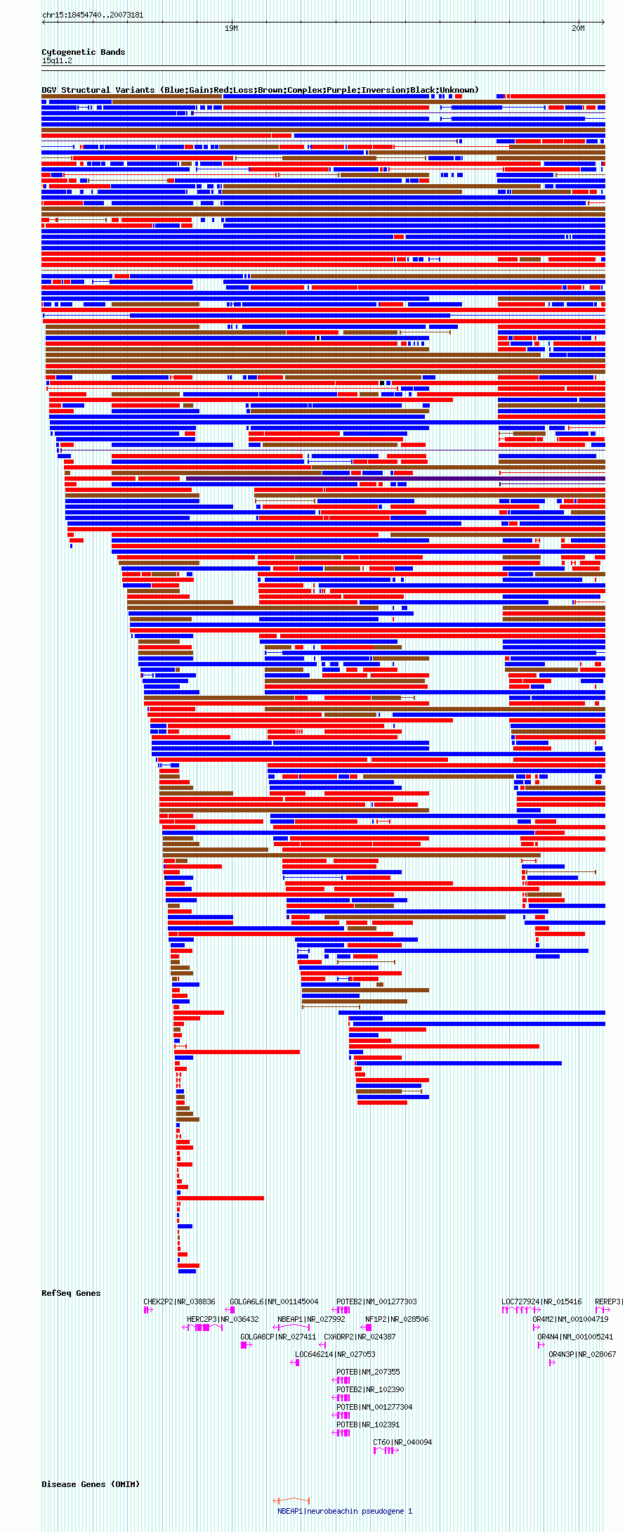 Variant DetailsVariant: nsv1048522| Internal ID | 19137741 | | Landmark | | | Location Information | | | Cytoband | 15q11.1 | | Allele length | | Assembly | Allele length | | hg38 | 2294394 | | hg19 | 2377092 | | hg18 | 1618442 |