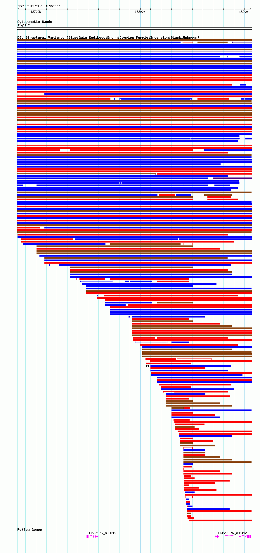 Variant DetailsVariant: nsv1048523| Internal ID | 19137742 | | Landmark | | | Location Information | | | Cytoband | 15q11.1 | | Allele length | | Assembly | Allele length | | hg38 | 224198 | | hg19 | 224198 | | hg18 | 224198 |
