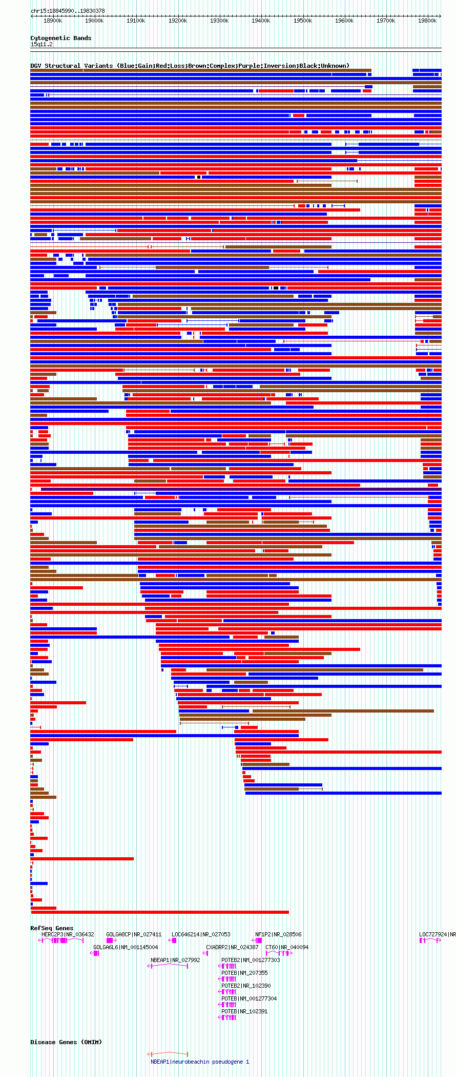 Variant DetailsVariant: nsv1048585| Internal ID | 19137804 | | Landmark | | | Location Information | | | Cytoband | 15q11.1 | | Allele length | | Assembly | Allele length | | hg38 | 1660341 | | hg19 | 1743039 | | hg18 | 984389 |