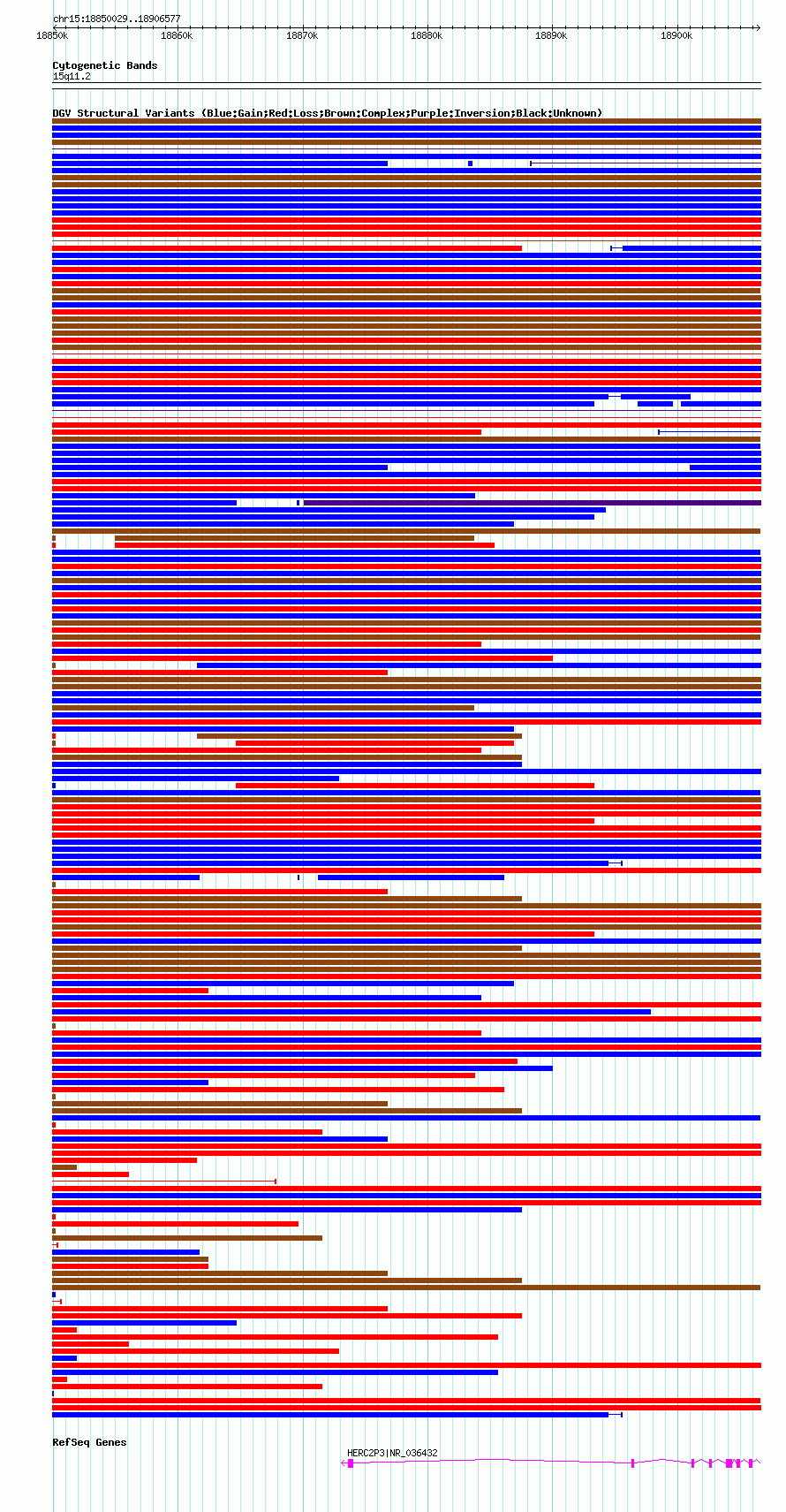 Variant DetailsVariant: nsv1048613| Internal ID | 19137832 | | Landmark | | | Location Information | | | Cytoband | 15q11.1 | | Allele length | | Assembly | Allele length | | hg38 | 56549 | | hg19 | 56549 | | hg18 | 56549 |