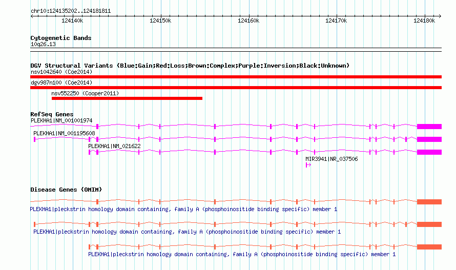 Variant DetailsVariant: nsv1048754| Internal ID | 19137973 | | Landmark | | | Location Information | | | Cytoband | 10q26.13 | | Allele length | | Assembly | Allele length | | hg38 | 46610 | | hg19 | 46610 | | hg18 | 46610 |