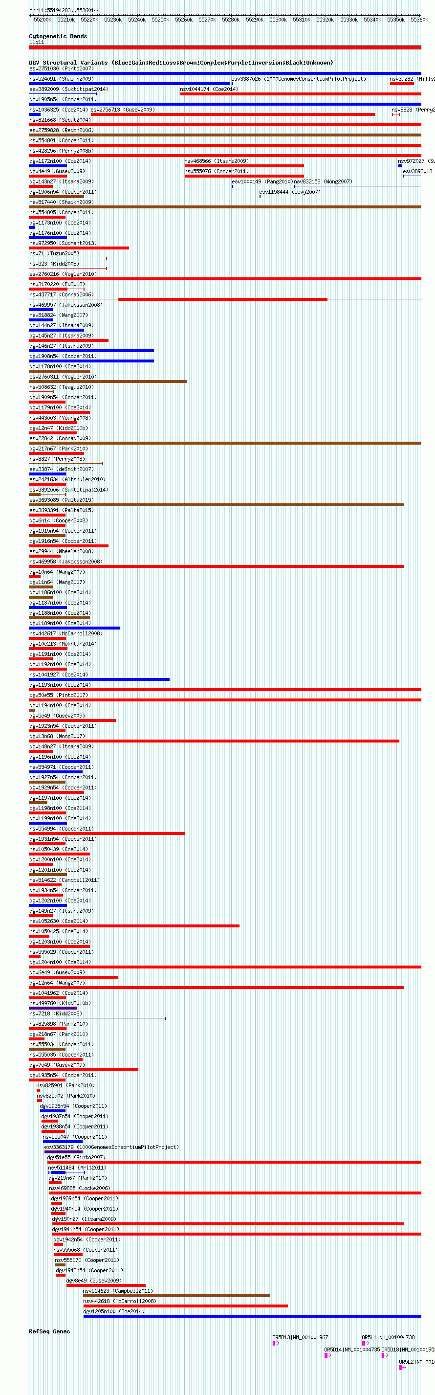 Variant DetailsVariant: nsv1048776| Internal ID | 19137995 | | Landmark | | | Location Information | | | Cytoband | 11q11 | | Allele length | | Assembly | Allele length | | hg38 | 165862 | | hg19 | 165862 | | hg18 | 165862 |
