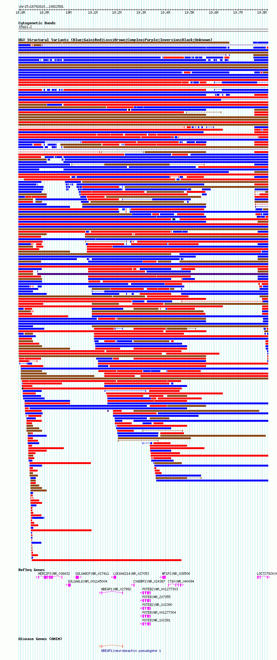 Variant DetailsVariant: nsv1049128| Internal ID | 19138347 | | Landmark | | | Location Information | | | Cytoband | 15q11.1 | | Allele length | | Assembly | Allele length | | hg38 | 1705915 | | hg19 | 1788613 | | hg18 | 1029963 |