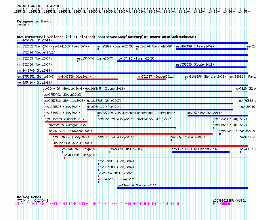 Variant DetailsVariant: nsv1049415| Internal ID | 19138634 | | Landmark | | | Location Information | | | Cytoband | 10q26.3 | | Allele length | | Assembly | Allele length | | hg38 | 153795 | | hg19 | 153795 | | hg18 | 153795 |