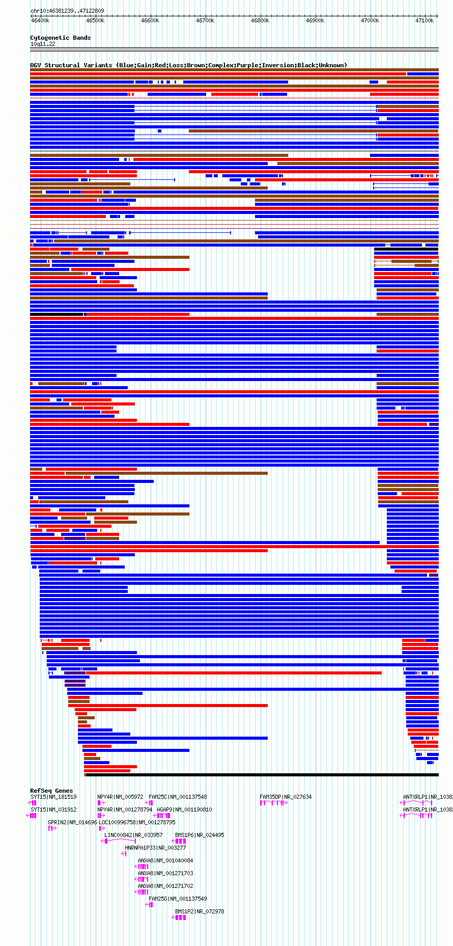Variant DetailsVariant: nsv1049711| Internal ID | 19138930 | | Landmark | | | Location Information | | | Cytoband | 10q11.22 | | Allele length | | Assembly | Allele length | | hg19 | 691571 | | hg18 | 741571 |